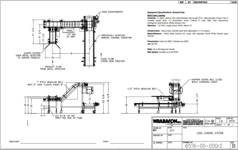 Wrabacon got to work by designing a custom packing system for this bakery’s precise needs. This meant manufacturing a case load system capable of bulk load cases of 16 oz. and 24 oz. of wrapped, frozen dough balls, per case: these dough balls are to be produced at a maximum rate of 60 per minute.